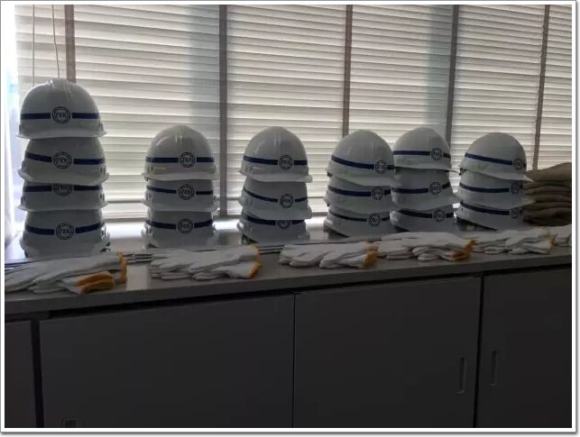 在進入工地前,考察人員被要求換上統一的工裝,并戴上頭盔。