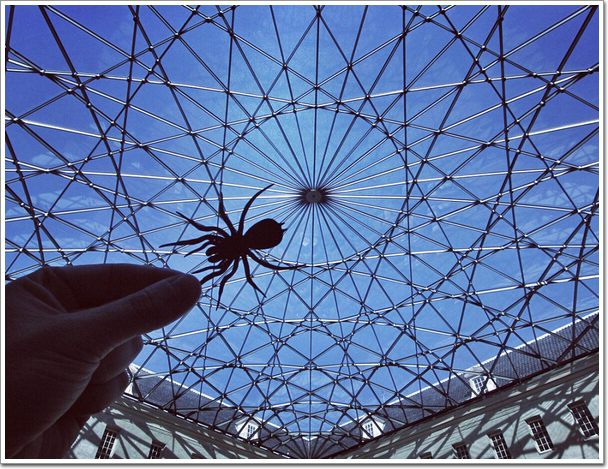 倫敦海事博物館縱橫交錯的天花板為麥克爾創造的蜘蛛剪紙爬行提供了完美蛛網