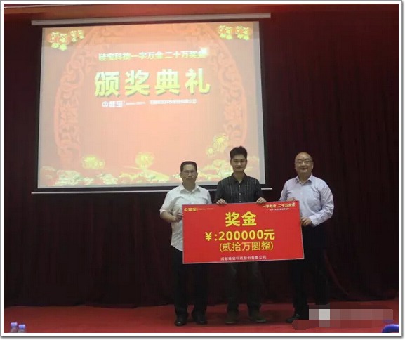 備受矚目的頒獎環(huán)節(jié)將大會推向高潮,在現(xiàn)場近200名客戶的見證下,硅寶科技董事長王躍林和總裁王有治向獲獎作者鄧先生頒發(fā)二十萬大獎,并對二十萬獎金覓得主人表示祝賀,對社會各界人士的參與表示感謝!