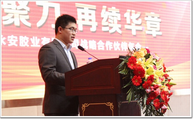 羊獻銀毫書捷報,猴揮金棒迎春來。2016年3月2日,“凝心聚力·再續華章”山東永安膠業有限公司2015年度優秀客戶工作總結會議在河南鄭州天鵝湖大酒店隆重召開,來自全國的近200位優秀辦事處負責人、代理商參加了此次年會。