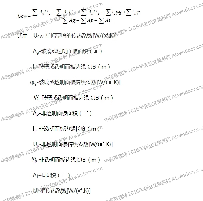 幕墻的整體傳熱系數(shù)由框傳熱系數(shù)、面板傳熱系數(shù)(詞條“面板傳熱系數(shù)”由行業(yè)大百科提供)、邊界區(qū)線傳熱系數(shù)三部分的加權(quán)平均值獲得