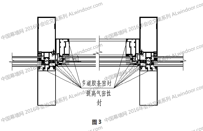 3)封:采用多道三元乙丙膠(詞條“三元乙丙膠”由行業(yè)大百科提供)條進(jìn)行密封,在提高氣密性的同時(shí),進(jìn)一步減少熱量的對流。如圖3;