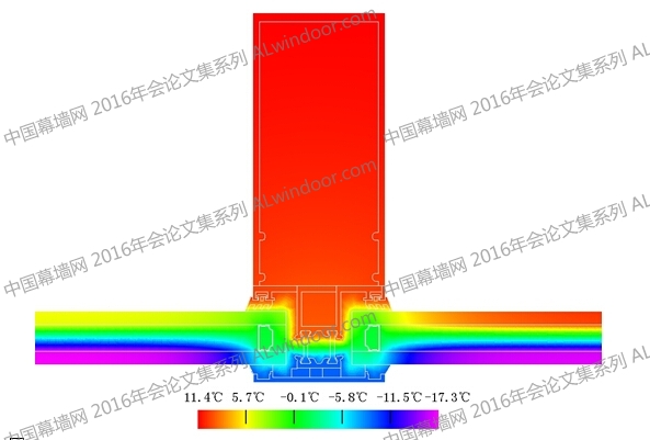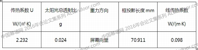 其他基礎(chǔ)條件不變,型材稍有變動,隔熱條更換為pvc隔熱條,玻璃換為中空low-e玻璃,面板傳熱系數(shù)1.8W/(㎡·K),間隔條更換為鋁間隔條,玻璃與鋁合金框之間不填充隔熱物質(zhì),計(jì)算方法相同,經(jīng)計(jì)算,