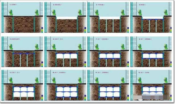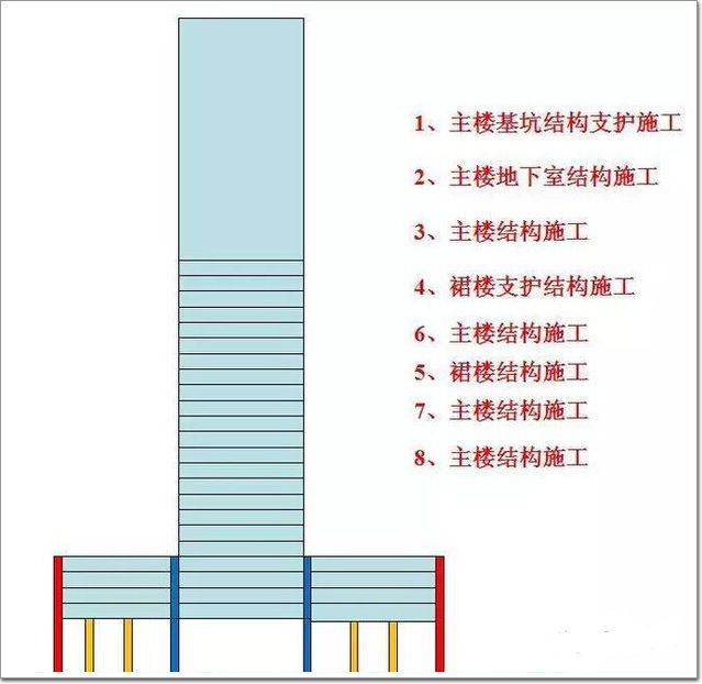順做法是遵循先深后淺的原則,地下室全部采用從下至上的施工步驟,地下室結構完成后再開始上部結構施工。