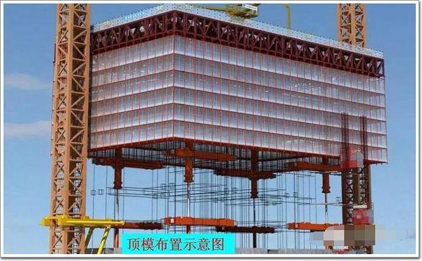 頂模是通過長行程、大噸位液壓雙作用油缸頂升體系,一個行程即可頂升一個結構層,在很短時間內即可完成全部頂升工序,加快施工速度。