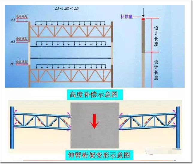 因超高層混凝土核心筒與外框鋼結構采用錯層施工,且混凝土與鋼結構的收縮量并不相同,因此在每個施工階段以及施工結束后,結構外框巨型柱與核心筒之間存在豎向差值,且該差值會導致的水平構件(內外筒剛性連接梁與樓板、伸臂桁架等)產生的附加應力,需根據仿真計算結果進行修正并采取相應施工措施予以解決。