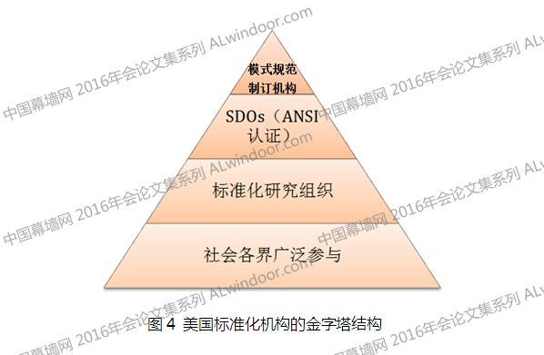 長期以來,美國推行的是民間標準優先的標準化政策。美國政府、民間組織和企業都參與標準規范的制定。標準再經引用,成為技術法規的一部分被監督執行。形成如下圖的金子塔結構: