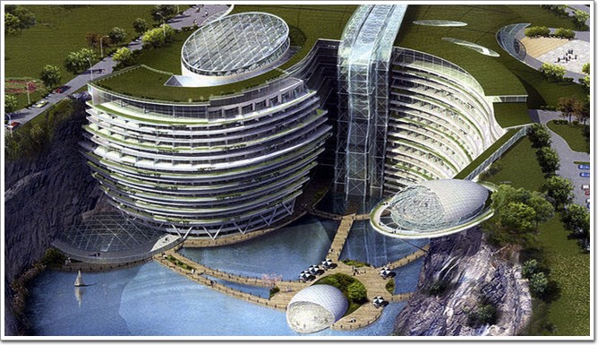 隨著建筑技術工藝的發展,設計師們的一些天馬行空,甚至近乎瘋狂的創意真的有機會從稿紙上走入現實世界,進入大眾視野,他們之所以能夠有這樣豐富的想象力創造出驚世駭俗的作品,化腐朽為神奇,大概是他們眼中的現實世界本該就是這樣的吧,位于上海松江區的“深坑酒店”就很好的佐證了這一點,這是一項具有改革性意義的工程,今天小編就為大家介紹一下這個挑戰人類對地下空間運用極限、同時也是建筑世界性難題的奇跡——天馬山世茂深坑酒店。