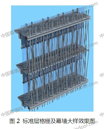 本項(xiàng)目幕墻外層格柵部分設(shè)計(jì)為單元式結(jié)構(gòu),其標(biāo)準(zhǔn)層格柵大樣如圖2所示。