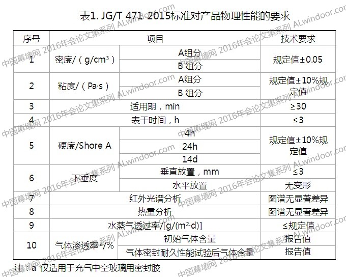 中空玻璃作為一種節能、隔音的環保型產品,在建筑門窗幕墻上得到了越來越廣泛的應用。2014年我國全年中空玻璃產量突破1億平方米[1],對于如此巨大的中空玻璃市場,質量問題至關重要。目前我國中空玻璃存在的主要問題是壽命短、質量沒有保證,主要表現是使用一段時間后中空玻璃出現結露、滲水(詞條“滲水”由行業大百科提供)、甚至玻璃脫粘現象,中空玻璃隔熱保溫等功效完全喪失,這種問題產生的主要原因之一是密封膠失效[2]。中空玻璃是粘結裝配的玻璃密封構件,密封膠的耐久粘結是使用壽命的基本保證。為了控制中空玻璃用密封膠的產品質量,采用科學嚴格的產品標準要求是一項重要措施。JG/T 471-2015《建筑門窗(詞條“門窗”由行業大百科提供)幕墻用中空玻璃彈性密封膠》標準(以下簡稱“新標準”)是根據住房和城鄉建設部建標[2012]4號《關于印發2012年住房和城鄉建設部歸口工業產品行業標準制訂修訂計劃的通知》要求,由鄭州中原應用技術研究開發有限公司及中國建筑科學研究院主編,于2015年7月1日起實施。本文詳細闡述了新標準的主要內容,并分析了各項指標要求的意義及標準的先進性。