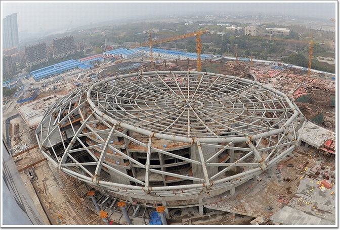 當(dāng)然,內(nèi)部細(xì)節(jié)處都能精益求精,外部更是容不得半點馬虎,大劇院建設(shè)的施工難點在于不規(guī)則的外觀。四個“水滴”大廳都是不規(guī)則的圓形,流線感極強,各個方位的弧度不同,最大的歌劇廳、綜藝廳,跨度高達160米,且沒有一道軸線是橫平豎直的,全是弧形,因此不論鋼材還是外立面的材料,都是量身定制,而僅僅是鋼材就要用掉4萬噸,整體建筑抗震級別達到8級。