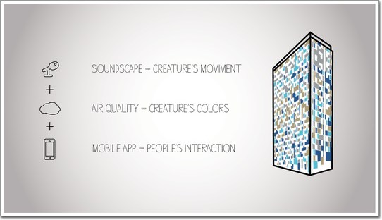 圣保羅市WZJardins酒店的互動式燈光幕墻項(xiàng)目名為“光之生靈(TheLightCreature)”,為30層高的酒店提供可視化的立面,通過改變自身,與周邊環(huán)境形成交流,并回應(yīng)了諸如空氣質(zhì)量、聲音等刺激要素。