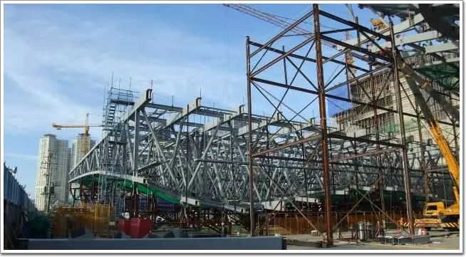參考施工照片,我們可以發現,這一空間桁架耗費了大量的鋼結構構件。