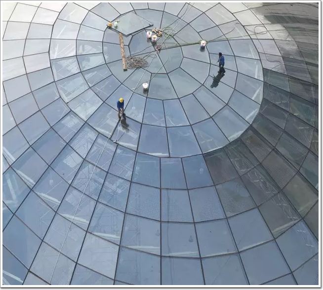 結(jié)構(gòu)膠養(yǎng)護(hù)到期采用擦窗機(jī)更換相應(yīng)玻璃扣蓋。