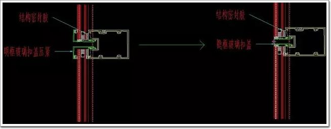 玻璃扣蓋的槽口是通用的,在半隱幕墻需要注結(jié)構(gòu)密封膠的一邊養(yǎng)護(hù)期好后更換臨時(shí)固定的明框外飾扣蓋。