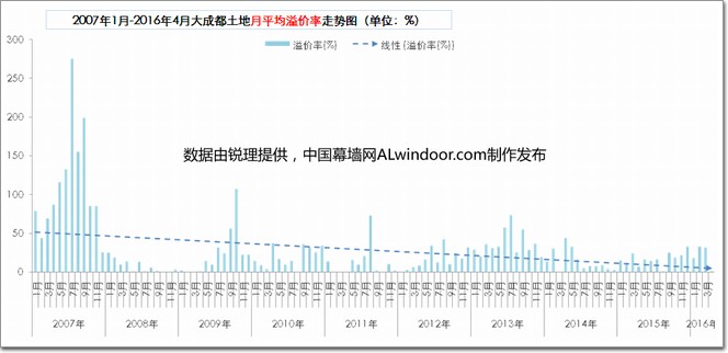 5、【溢價率】整體來說,成都土地的整體溢價率在逐年下降,今年1-4月份溢價率保持在較低位