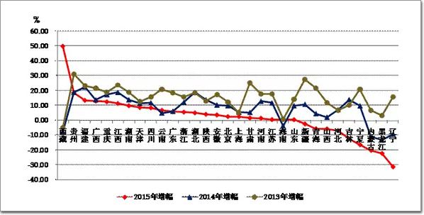 圖18 2013~2015年各地區建筑業總產值增速