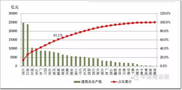 (一)江、浙兩省建筑業總產值雄踞行業龍頭 西藏增速大幅提高