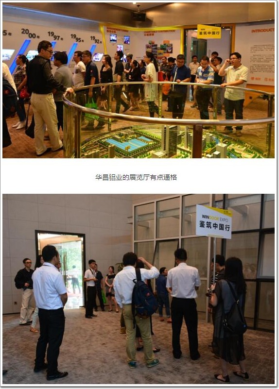 當天下午,WindoorExpo鑒筑中國行一行來到了“全國鋁合金型材產業知名品牌創建示范區十大骨干企業品牌”之一的華昌鋁業。華昌鋁業高層與建筑師探討了型材行業進入調整的大環境下的發展趨勢,也參觀了華昌的產品體驗廳和生產線,真切地體會到華昌鋁業強大的品牌綜合實力和對產品細節的精致要求。