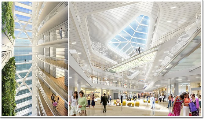 除此之外,還利用日光響應(yīng)控制收集自然光,采用高效裝置和使用人員控制優(yōu)化照明能源,能量回收系統(tǒng),需求控制通風(fēng),并設(shè)有一個場地能源中心,配有熱電聯(lián)供機房,以充分利用開發(fā)項目的總體用電指標。項目納入一系列高效率的措施,目標是比美國傳統(tǒng)的高層建筑節(jié)省60%的能耗,同時減少60%的飲用水使用,如此高標準的節(jié)能措施,在國內(nèi)也并不多見。