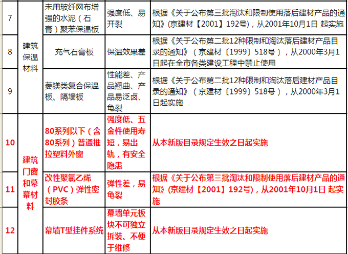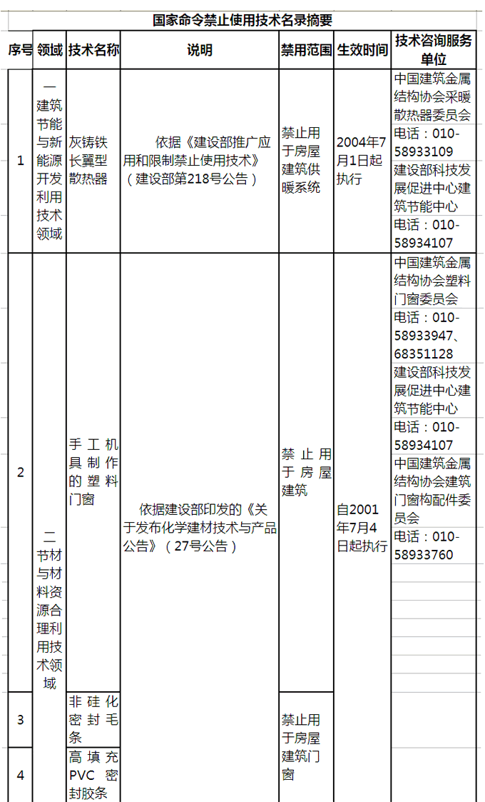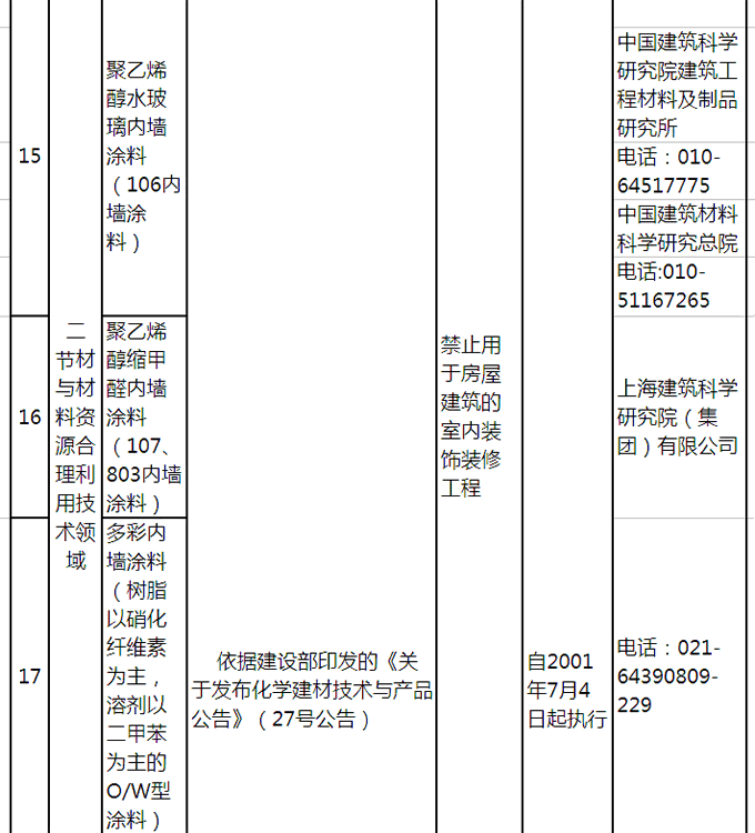 國家明令禁止使用的建筑材料和技術名錄(材料和技術綜合截至2016年)
