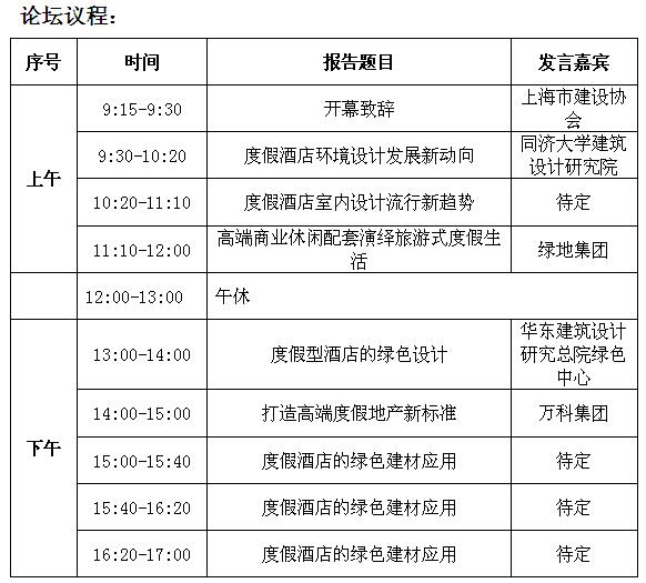 以上海國際綠色建博會暨上海別墅配套設施展為契機,高端酒店建筑發展趨勢為主題,搭建一個集設計師、配套商、開發商三位一體的高端論壇平臺,從規劃應用、施工建設、運營管理等多角度共同暢談高端度假型酒店開發與設計的理念和追求,溝通供需,闡述價值,打造一個品味獨特、高端獨立的度假型酒店綠色生態環境。