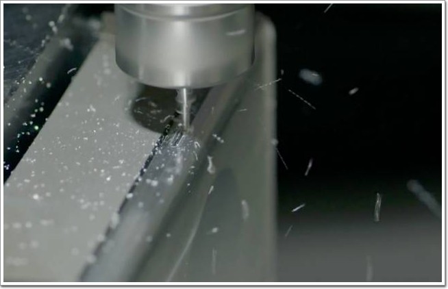 全金屬一體式CNC加工工藝最早由蘋果公司開(kāi)創(chuàng)——鋁板由柱狀實(shí)心鋁材壓鑄而成,經(jīng)精密加工先切削成為一體式機(jī)身的雛形,隨著機(jī)身漸漸成形,機(jī)身上的鍵盤形狀和各種細(xì)微構(gòu)造均被銑削出來(lái)。此過(guò)程共包含九道數(shù)控銑削工藝,九道工藝之后便獲得精密的一體成型外殼。