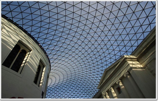 倫敦一處古典主義風格的博物館(圖片二),其大庭院上空被一尺度巨大的玻璃屋頂所覆蓋,形成一個充滿陽光的室內中庭。這是著名建筑師諾曼·福斯特的杰作。