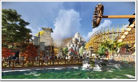 蜀道難(木質過山車),通過塑石與木板構筑的走道,帶游客穿越蜀道的陡峭山壁。