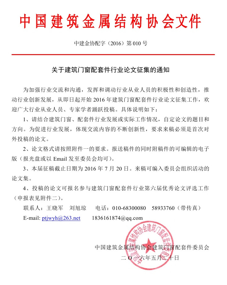 建筑門窗配套件行業資訊集錦:匯集行業最新資訊、專家最新技術論文..... 2012年度建筑門窗配套件行業“用戶首選品牌”調查活動:為促進建筑門窗配套件行業健康發展,提高整個行業的品牌意識...... 第三屆建筑門窗配套件行業科技創新論文大賽:第三屆建筑門窗配套件行業科技創新論文大賽頒獎盛典在廣東省佛山市隆重召開...... 第十屆建筑門窗配套件行業技術交流會:2011年10月31-日,第十屆建筑門窗配套件行業技術交流會在北京圓山大酒店順利召開......