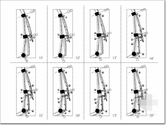 A塔核心筒八層至十九層墻定位圖