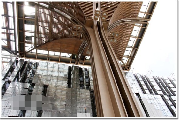 其次,在文化中心的東南方向就是備受期待的“東方演藝中心”,并分為大小兩個劇場。其中,大劇場可以容納1200人,小劇場可容納400人,今后,這里將演出諸多國際化的演出項目。據悉,大劇院為了實現升降舞臺,采用了43.5米高的高支模,這種技術還曾經用于天津大火箭基地的火箭支架建設中。