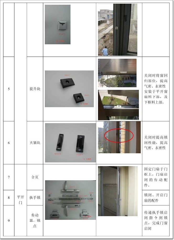 五金配件是鋁合金門窗完成開啟、關閉、固定的主要部件,不同類型的窗可以配置不同的五金配件,下表即為目前各種窗型我們常用的五金配件: