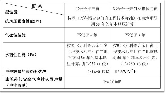鋁合金門窗的主要性能應不低于下表的要求