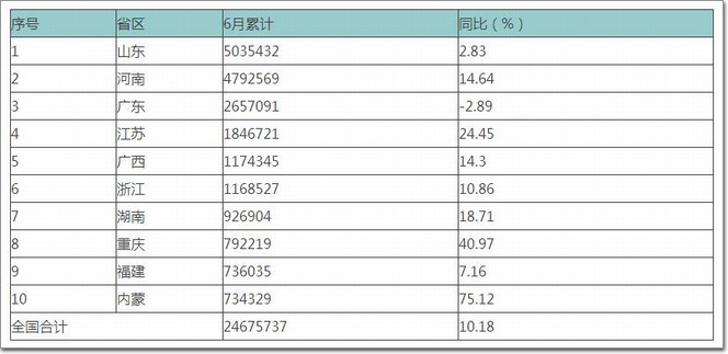 “鋁材”產(chǎn)量前十名省區(qū)排行(噸)