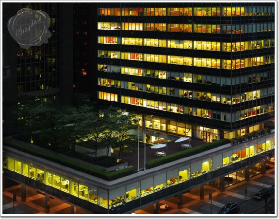 紐約利華大廈,裙樓中間形成的院落和屋頂花園