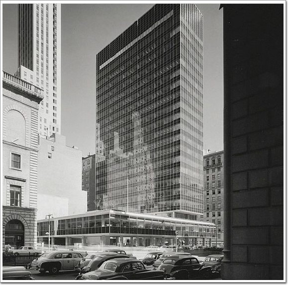 說到玻璃幕墻建筑,那就不得不提到全玻幕墻的鼻祖——紐約利華大廈,雖然它的高度不足百米,但它里程碑式的意義并不次于帝國大廈,采用的全玻璃幕墻做為大廈的外圍護結構則是突破性的。 利華大廈的英文為:Lever House,位于紐約花園大道53街和54街之間,是世界上第一幢采用全玻幕墻的高層建筑,高度為94米,共24層,下設2層裙房,該建筑始建于1950年,1952年建成(那時候的中國才剛打完仗),至今已有64年的歷史,即使在今天看來,該大樓亦并未失色于眾多新興的幕墻建筑,可見其設計師的前瞻性眼光是多么強大,大廈由美國SOM事務所擔綱整體設計,設計師是戈登·邦夏,之前小編跟大家提到過SOM最擅長的就是高層或超高層的建筑設計,這大概就是從利華大廈開始的吧,利華大廈的落成不僅開創(chuàng)了一種新的建筑語言,同時也為全世界的辦公樓設計樹立了標準。