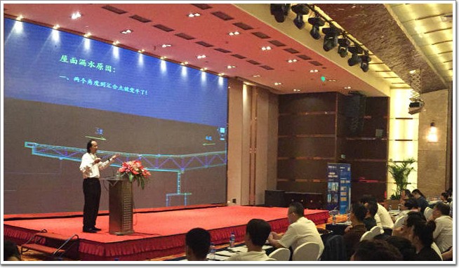 幕墻發燒級大師——中國建筑設計院建筑帷幕設計咨詢中心主任羅憶先生主講《帷幕創新、構造與安全》,從自身實踐的經典工程案例切入,對具體的系統節點構造、采光頂、大型索結構幕墻的設計要點、難點和疑點進行了分析,毫無保留的把帷幕工程的“秘密”一一展示給大家,讓在座的嘉賓大開眼界。羅大師還強調了建筑帷幕的構造與安全的重要性,并講述了作為設計人員,對職業的“愛、恨、情、仇”,充分表達了一個作為多年來高度專注幕墻設計者的情懷。