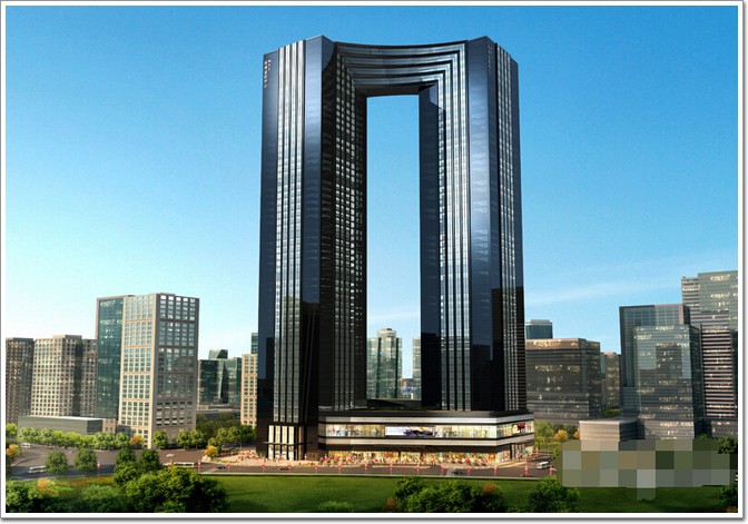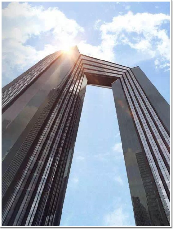領地環球金融中心的兩棟塔樓整體外形方方正正,自44層至頂層相連,形成云端空中連廊,以此刷新了成都360度全景辦公高度的新紀錄。它的外形設計讓中國幕墻網ALwindoor.com小編想到巴黎的凱旋門,不過再好的設計,眼尖毒舌的網友總會在現實中找到與之匹配的實物,該項目看上去除了像凱旋門,其實又挺像一條筆直的褲子,因此也被網友們戲稱為“直筒牛仔褲”,但凡遇到類似的設計,似乎都逃脫不了像“褲子”的命運。而從建筑的整體造型上來說,設計很干凈,線條流暢,直上直下的外形,雖缺少了幾分柔美之氣,卻多了幾分英氣硬朗,沒有冗余的設計也往往是最能禁得住時間的考驗,反之,過于花哨的設計總是難以成為建筑時尚界的“寵兒”。
