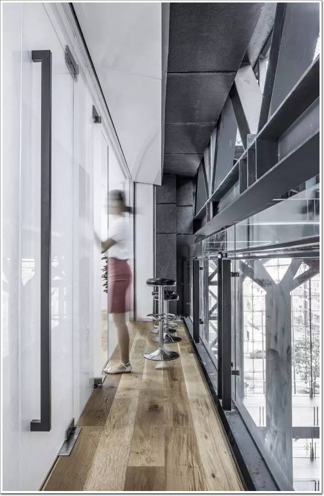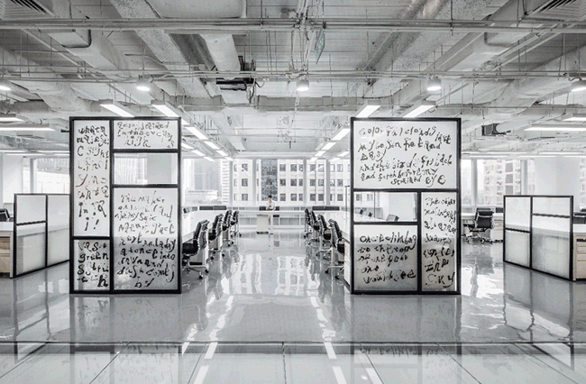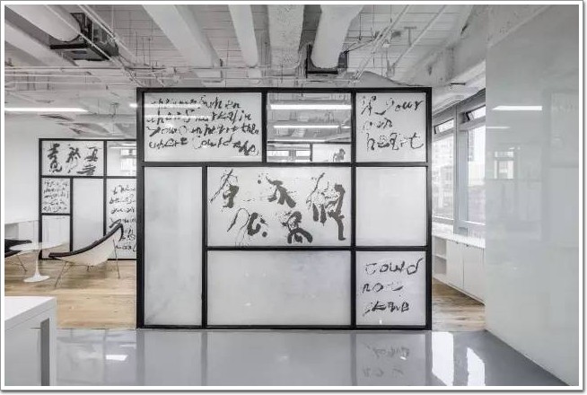 設計師于是用宣紙玻璃一層層地根據功能把辦公室分割成不同部分,宣紙玻璃事實上更進一步消解整個空間的體積,對設計師而言,宣紙玻璃就是屏風,在視覺上。一層層的它地把公司不同功能和部門(詞條“門”由行業大百科提供)碾平在不同層次的半透明的界面上,不同層次的活動在最前景合成一個二維的畫面,這三維的世界失去真實的時候,時間這個奇妙神奇但喜怒無常的野獸就好像被暫時困住了,結果呼應了中國古人在繪畫和詩歌上的審美。