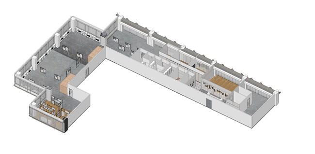 設計師習慣把任何建筑和室內設計看成一個世界的重構,原本試圖在這個740平米的空間中創造一種雖在室內但宛如置身園林的場景。不過公司負責人是個居住北京多年的北歐人,盡管對中國藝術有一定研究,但更傾向一種極簡主義的表達。