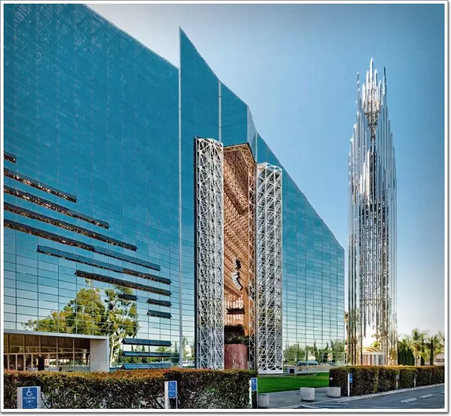 洛杉磯水晶大教堂玻璃品質(zhì)極高,映射出的克林塔沒有一絲變形