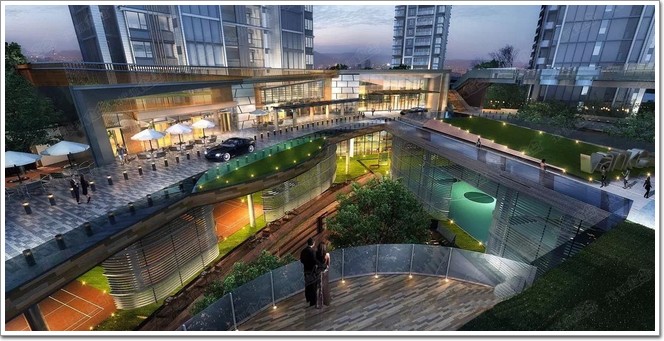 除此,天空之城還將打造媲美世界第一豪宅倫敦海德公園壹號的都會河景華宅,就目前的設計方案來看,往宅采用了海德公園壹號的大面積玻璃幕墻結合金屬線條的設計,風潮非凡,使其整座住宅樓形成除了邊框以外都是玻璃的即視感,這種形式在住宅樓上的運用是極少的,更引入紐約高線公園精湛設計,以高架穿梭于花園中的步道系統不僅大大提高了地鐵站的直達性,更使整座公園更加錯落有致。