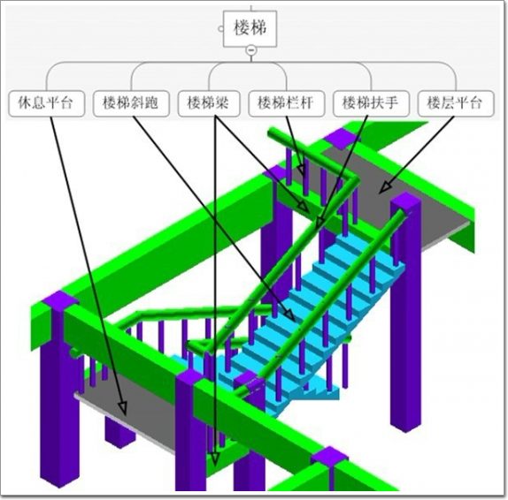 1.樓梯構(gòu)件細(xì)分 樓梯包含的構(gòu)件類別見圖3.4:
