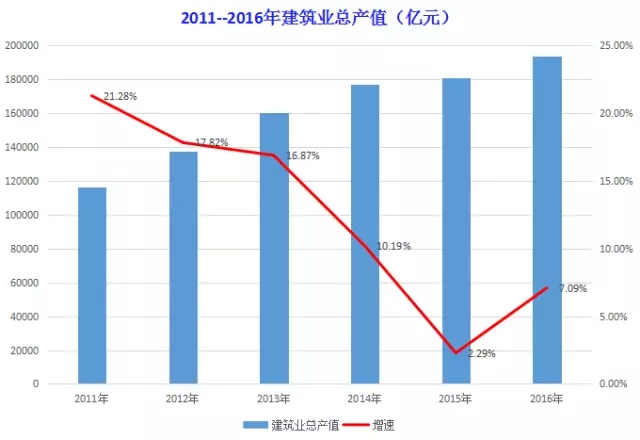 1、2016年建筑業總產值19.35萬億