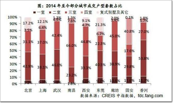 不同城市銷售主力戶型影響需求增長。我們同時認為不同城市當前主力戶型也將對未來需求產生影響。此前我們已經分析,認為隨著二孩家庭數量增加,部分家庭將考慮大戶型產品,短期內三室將成為主力戶型,而四室及以上將成為改善性需求集中區域。未來部分二室戶型的家庭在生育二孩后或將考慮換房。當前各城市主力戶型有明顯區別,從2014-2015年成交數據來看,多數城市二室戶型占比主要在40%左右,其中北京、武漢、東莞及北京周邊香河占比已超過40%,未來這些城市生育二孩家庭換房量相對較高;而南昌、西安占比相對較低,特別是南昌,近年三室戶型占比近2/3,未來新增人口對其庫存去化幫助將相對弱化。