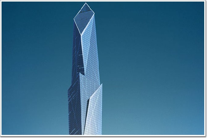 重慶101主體采用斜柱框架-核心筒-伸臂桁架(詞條“桁架”由行業(yè)大百科提供)結(jié)構(gòu)體系,在外立面的處理上也并不出乎意料的使用了全玻璃幕墻,大廈底部的設(shè)計(jì)并不同其他建筑一般采用了底座,而是直接采取直上直下的方式,造型從底部往上逐漸變小,塔頂玻璃幕墻采用切角處理,形成鉆石截面,使其玻璃幕墻的光澤感可以發(fā)揮到極致。