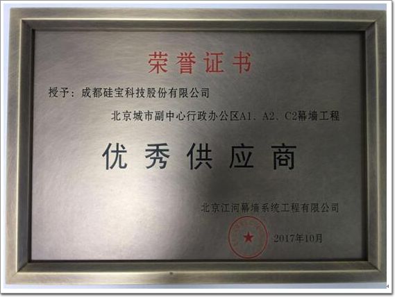 截至目前,硅寶科技與江河幕墻的合作項目已遍布全國各地,此次獲得“優秀供應商”稱號,不僅體現了江河幕墻對硅寶科技產品品質與服務質量的高度認可,更是雙方友好合作成果的最好印證!未來,硅寶科技將一如既往地以一流的產品和完善的服務與國內外一流大型知名幕墻企業精誠合作,共同為打造高端精品典范工程做出不懈努力,繪就共榮、共贏、共進的發展藍圖!