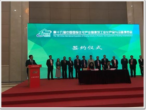 2017年10月12日,由住房和城鄉建設部科技與產業化發展中心(住宅產業化促進中心)、中國房地產業協會、中國建筑文化中心聯合主辦的“第十六屆中國國際住宅產業暨建筑工業化(詞條“建筑工業化”由行業大百科提供)產品與設備博覽會”(簡稱“中國住博會”),在北京中國國際展覽中心(新館)隆重開幕。住房和城鄉建設部總工程師陳宜明、住房和城鄉建設部建筑節能與科技司司長蘇蘊山、中國房地產業協會副會長馮俊、中國建筑文化中心主任曲琦、住建部住宅產業化促進中心主任俞濱洋等領導出席會議。在住博會開幕見面會暨工作交流會上,成都硅寶科技股份有限公司與住房和城鄉建設部住宅產業化促進中心隆重簽約。