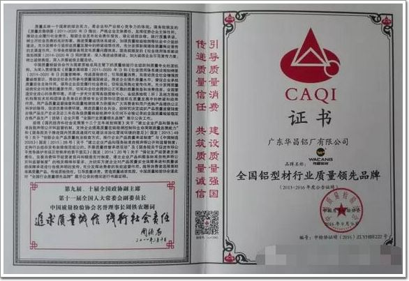 華昌鋁廠獲2016年全國鋁型材行業質量領先品牌